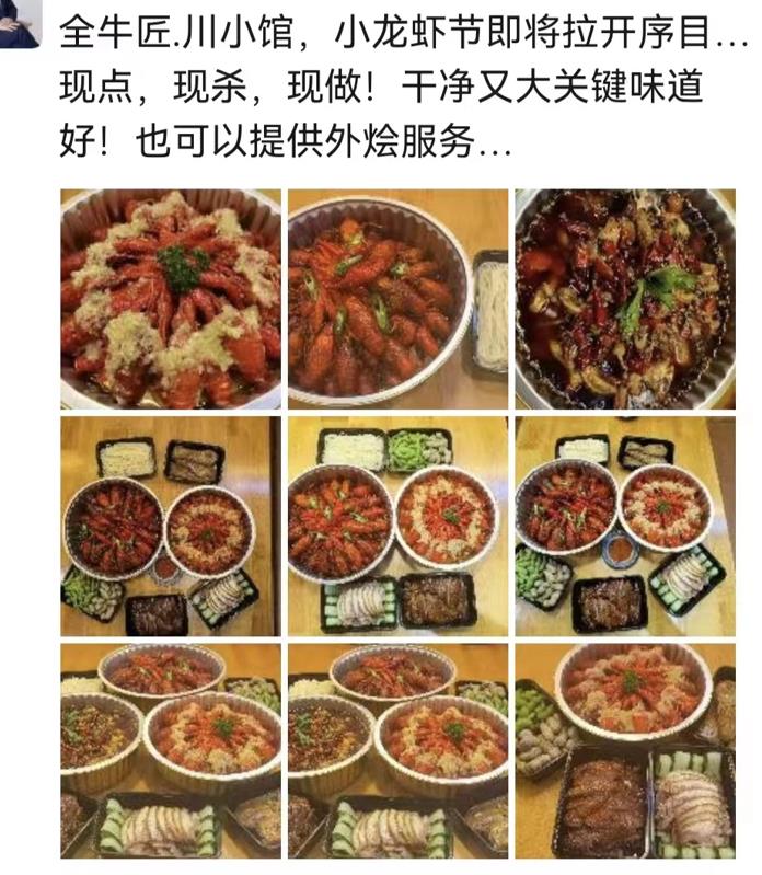 有人擺攤、做預(yù)制菜、直播、大廚上門,但做的最多的莫過于開賣小龍蝦。
